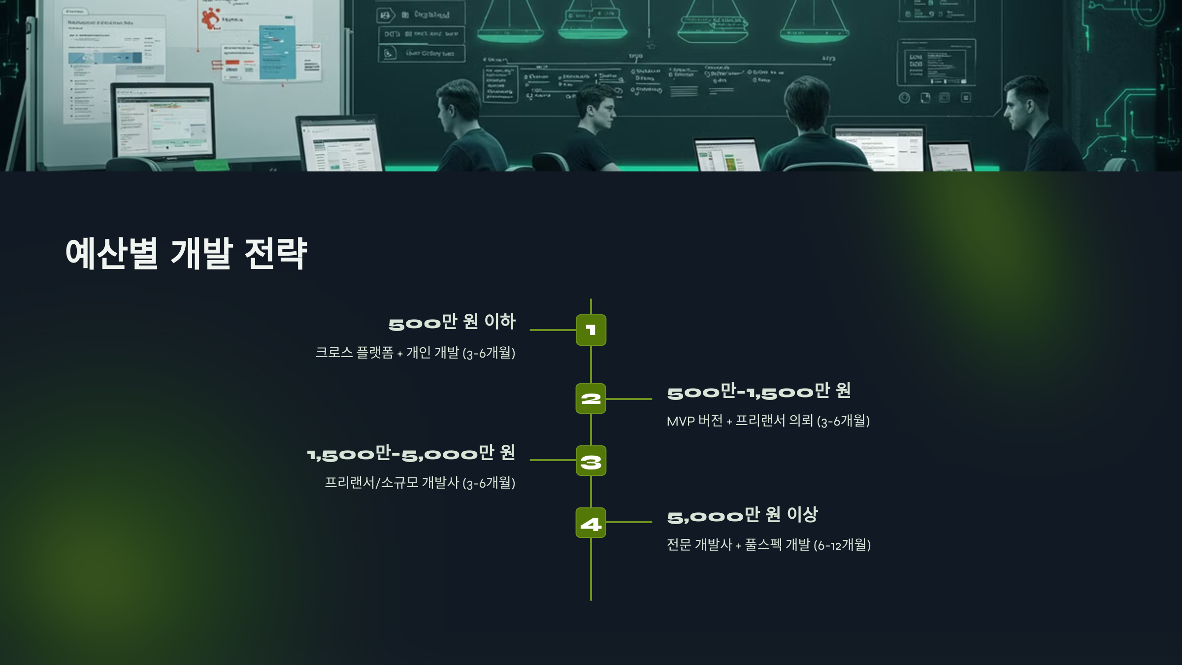 | 500만 원 이하 | 크로스 플랫폼 + 개인 개발 | 3~6개월 |
