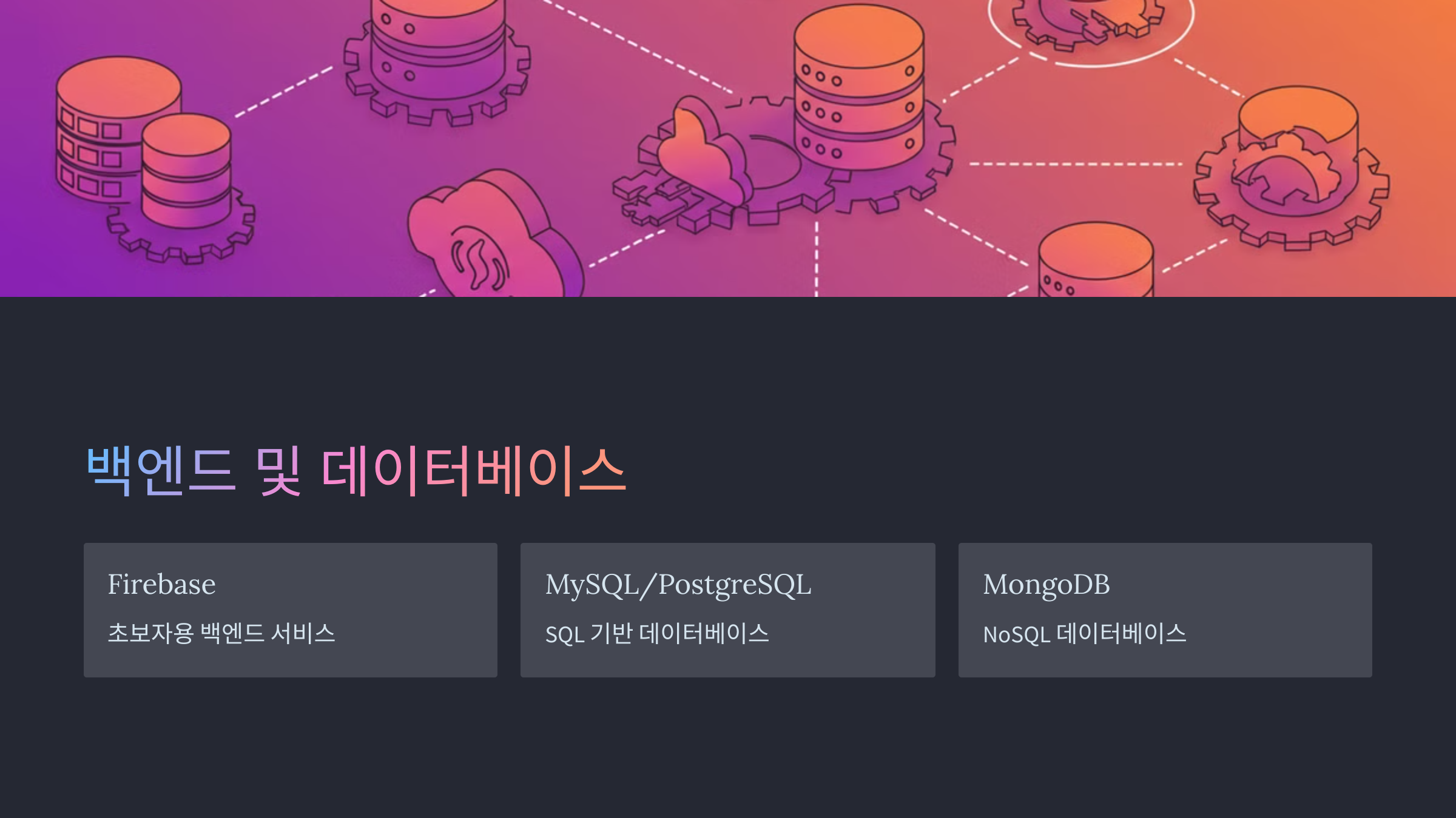 - 백엔드(Backend): 서버, 데이터베이스, API 등을 처리하는 영역