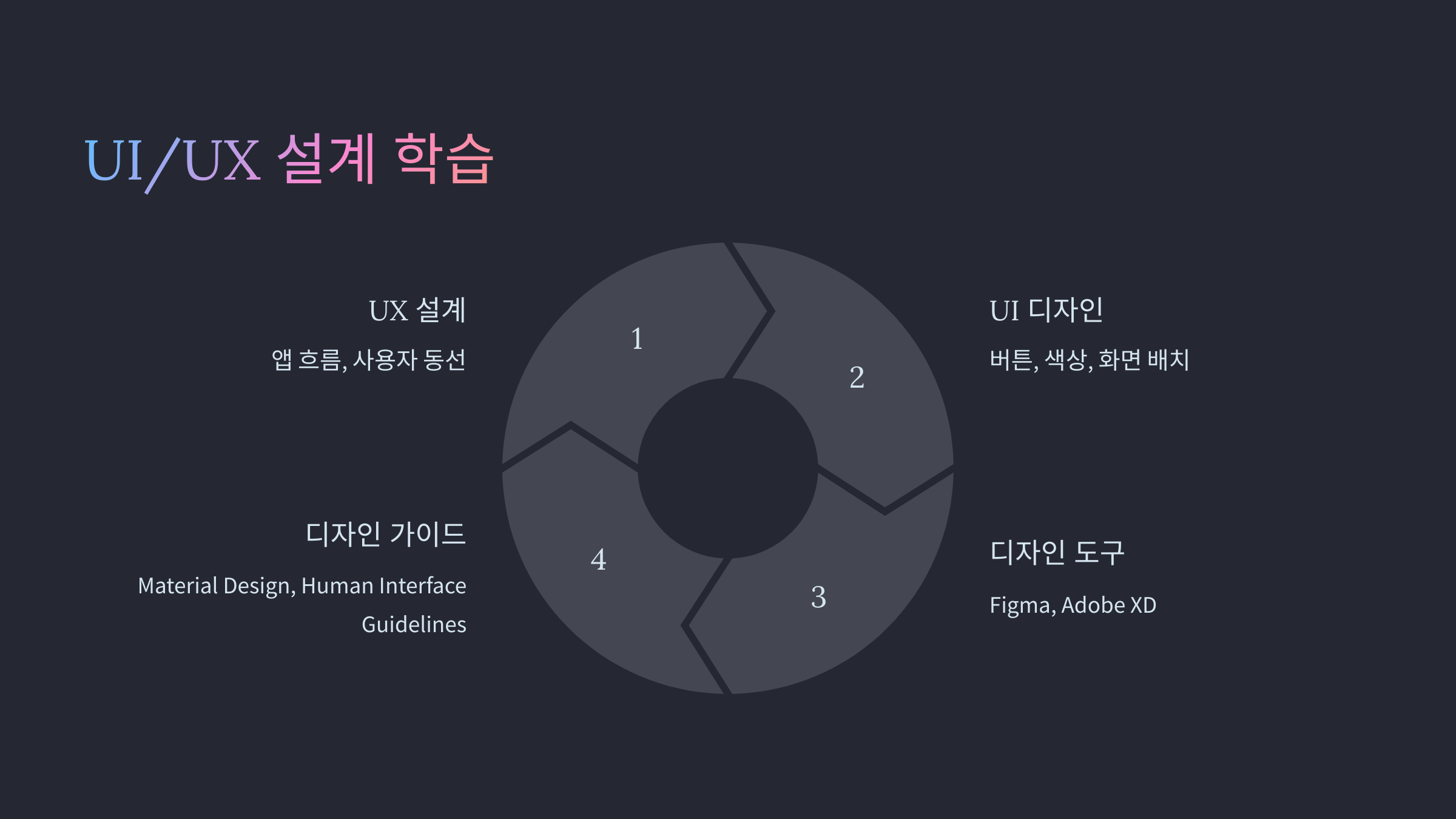 - UI/UX 학습 → Figma, Material Design 등 활용