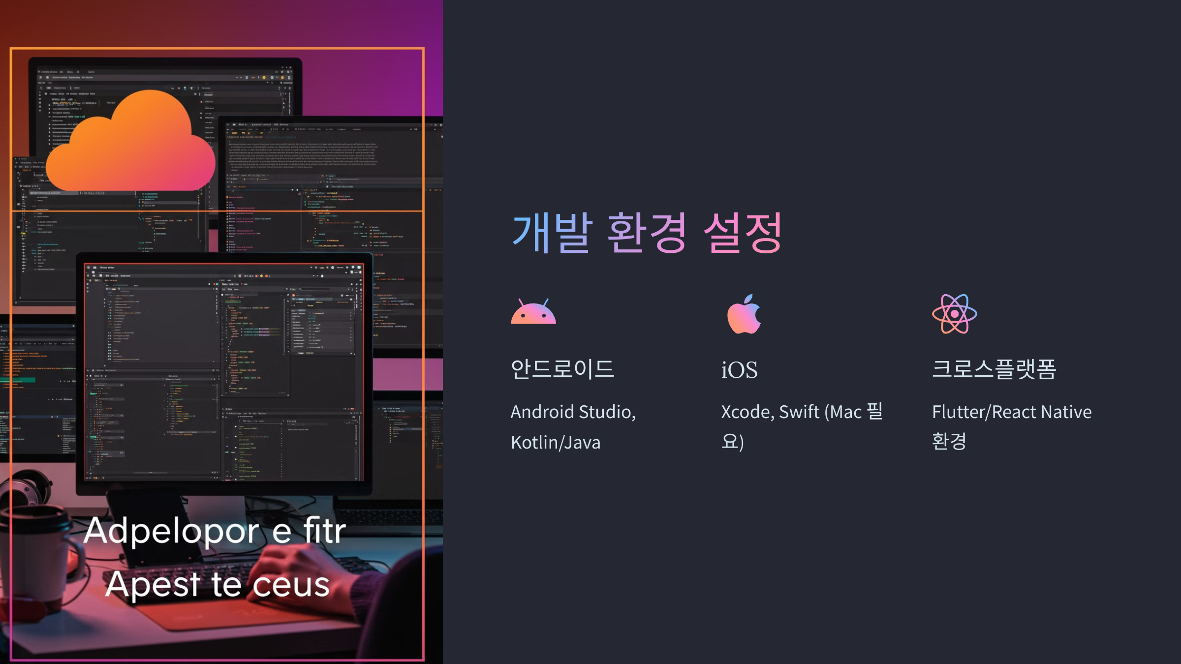 - 개발 환경 설정 → Android Studio, Xcode, VS Code 등 활용