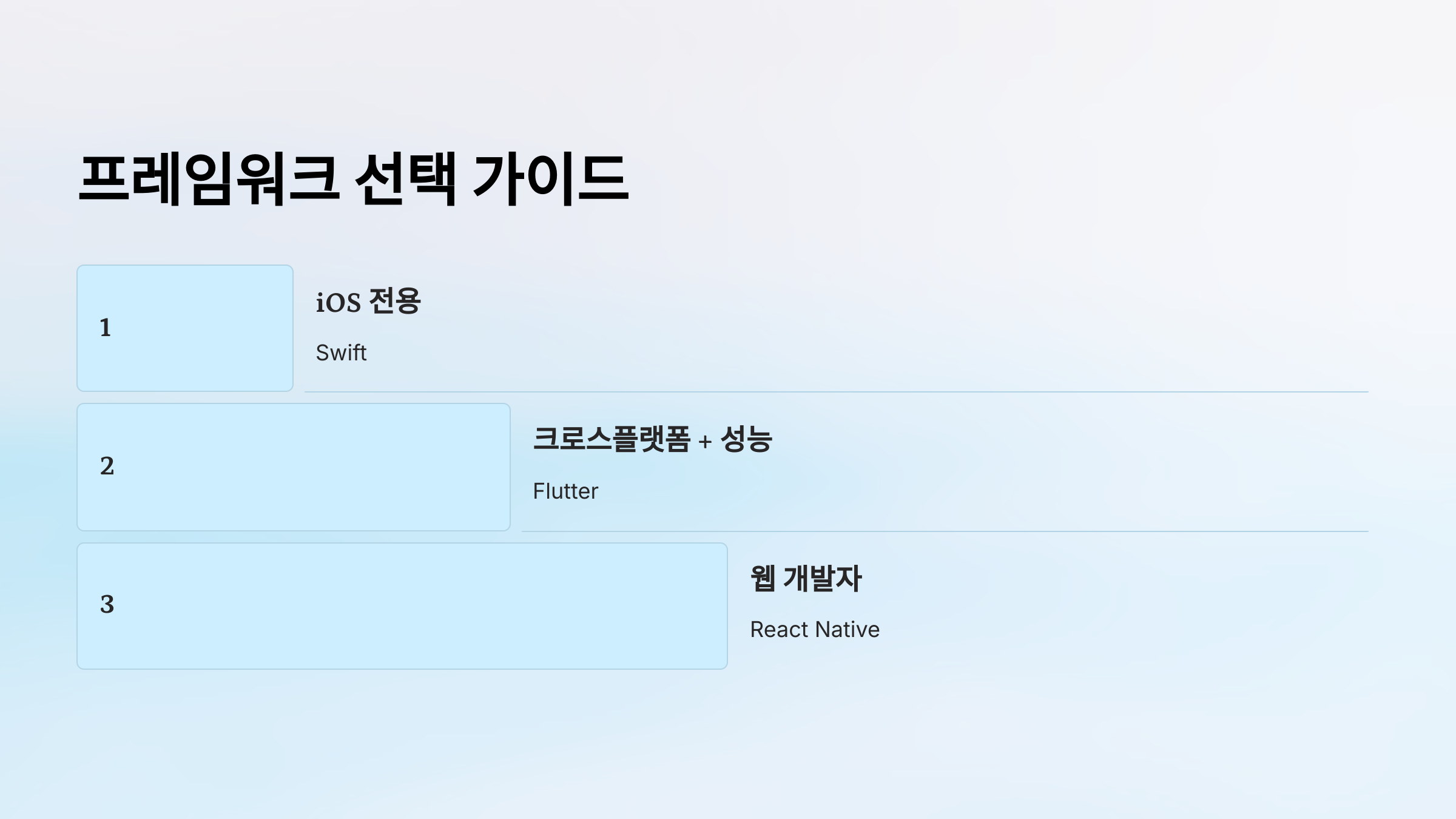 Flutter, React Native, Swift 중에서 어떤 선택을 하셨나요? 댓글로 의견을 나눠보아요! 😊