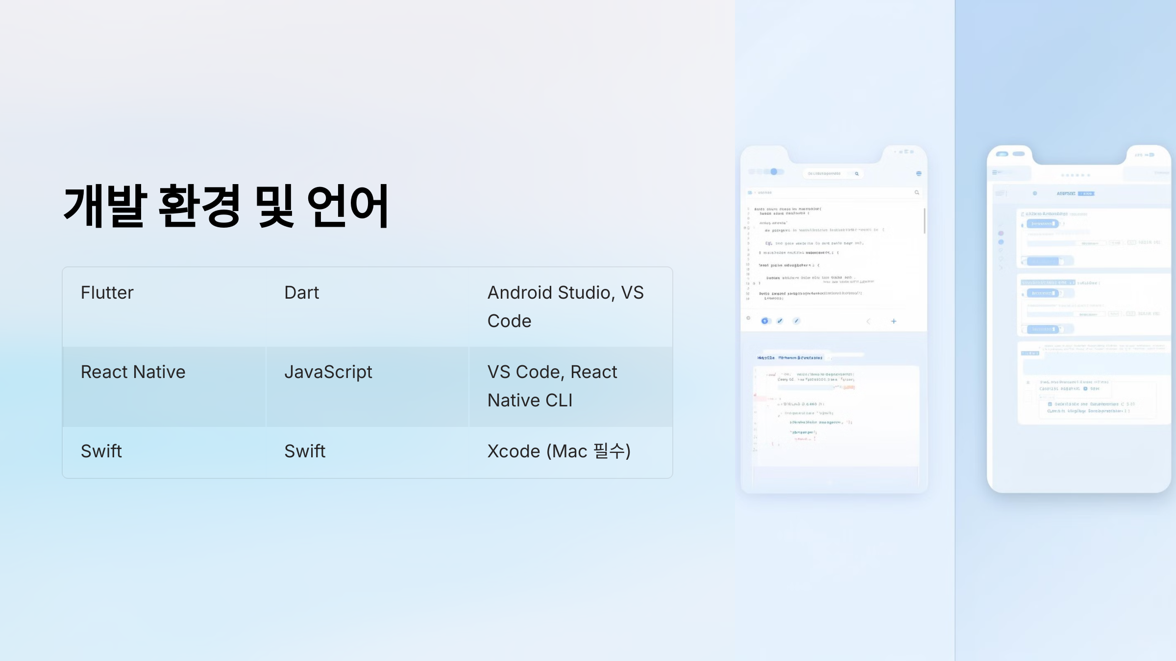 2. 개발 환경 및 사용 언어 비교 🛠️